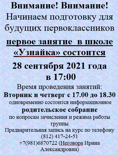 О дате и времени очной встречи с администрацией школы по вопросу организации приёма в 1 класс будет сообщено дополнительно. |