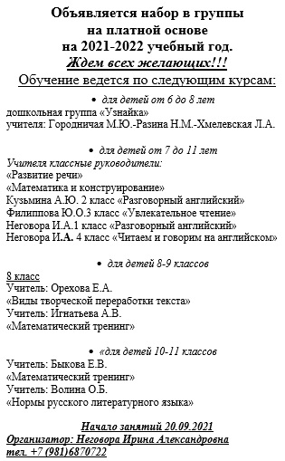 По всем вопросам обращаться к директору в часы приема: вторник 17:00-19:00
