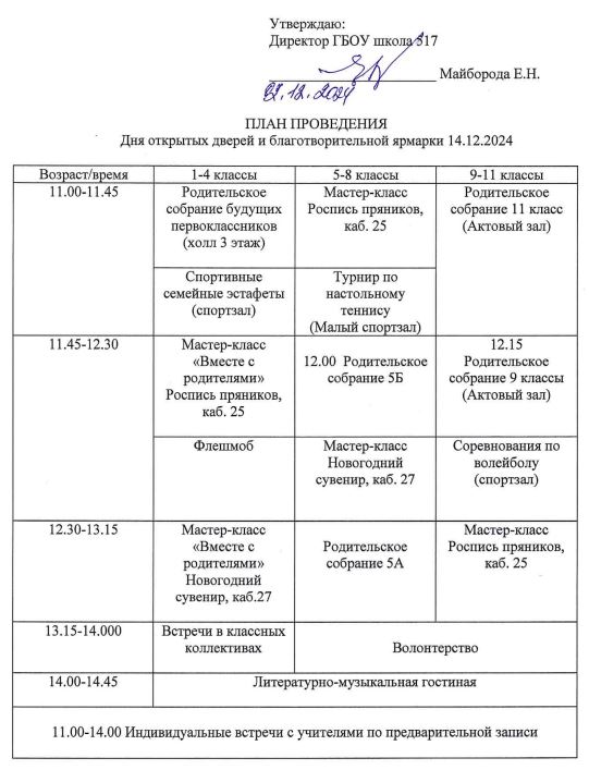 План проведения "Дня открытых дверей" 13.10.2018