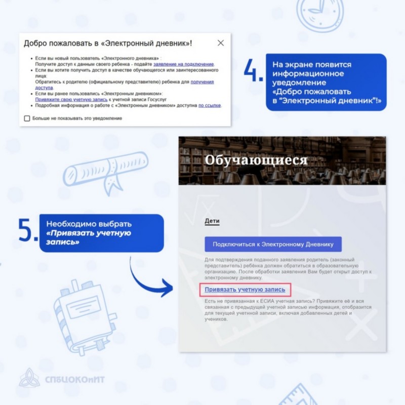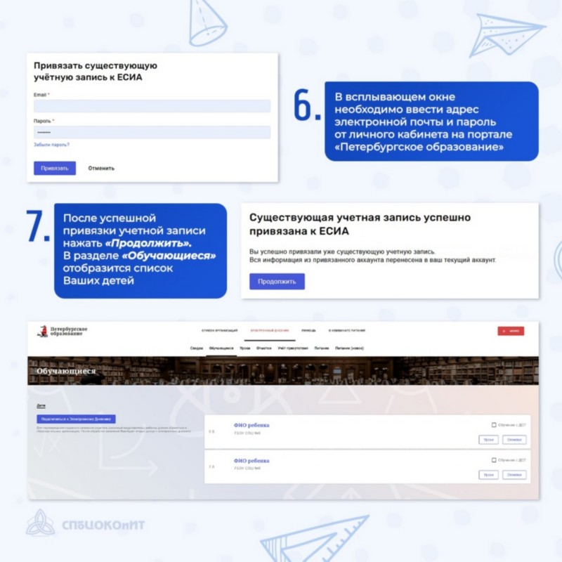 Рассказали в карточках, что делать, если после входа через ЕСИА в вашем личном кабинете на портале «Петербургское образование» перестала отображаться информация о детях, а также о том, как предоставить доступ к «Электронному дневнику» своему ребёнку.